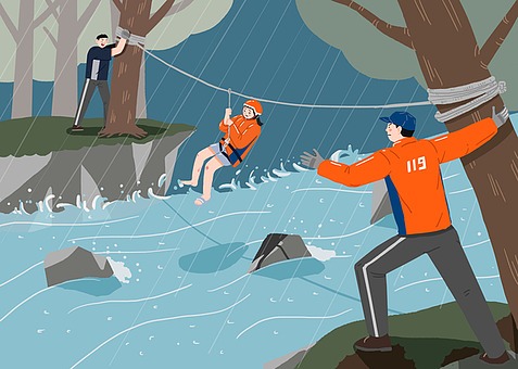 - 집에 갇혔거나, 물이 급격히 차오를 경우